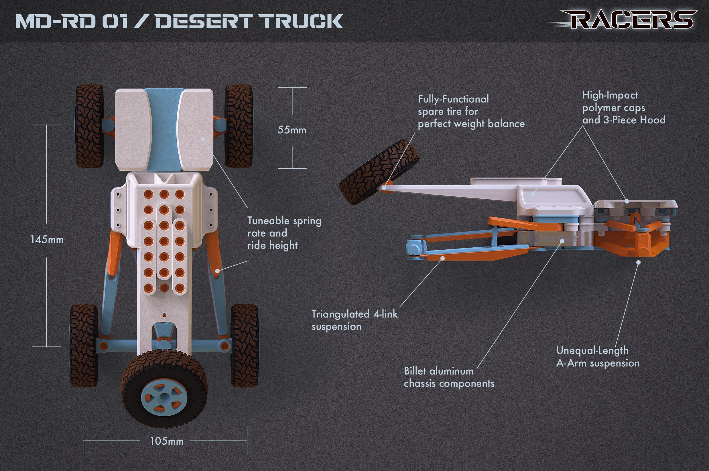 The B2 - Desert Truck is fun to build and an excellent introduction to the state-of-the-art in off road suspension design.